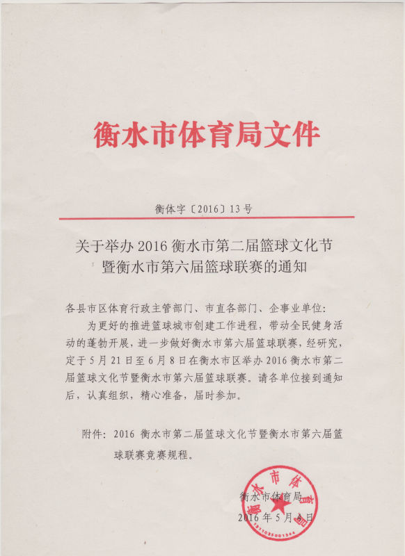 2016衡水市第二届篮球文化节 暨“启明杯”衡水市第六届篮球联赛竞赛规程